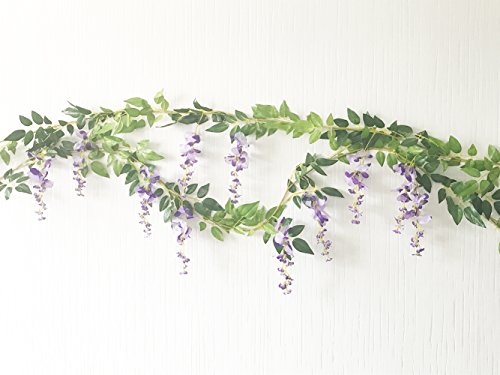 Crt Gucy 2 Pcs 6.6ft Artificial Flower Vines Silk Wisteria Ivy Vine Hanging Plants for Wedding Party Home Garden Wall Decoration, Purple