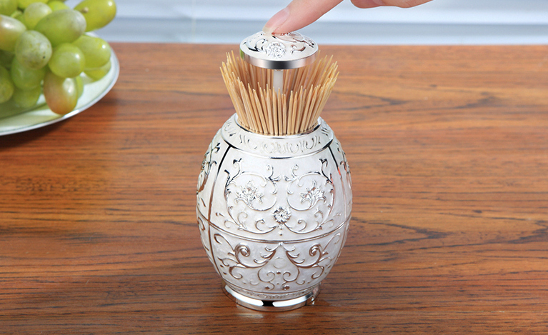 美しいフォルムに細やかな装飾,しかもワンプッシュ式なので楽々片手でポンッと爪楊枝が出てきます。
