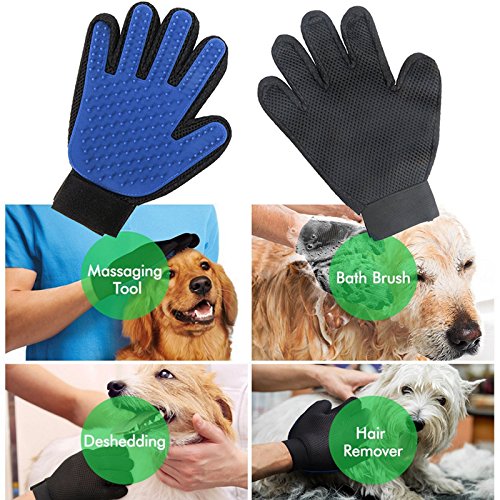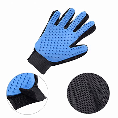 WHAT'S THE REAL LOVE FOR YOUR PETS AND YOUR FAMILA? YHMALL'S Pet Grooming Gloves can answer your question. Try our Grooming Glove and completely forget about shedding like an awful nightmare. Get rid of hairballs before they appear once and for all then give you a comfortable and clean house. Features: 1.Your pet will love the touch glove true five finger deshedding glove 2.Mimics the touch of your hand for a massage; includes 180 soft silicone tips to groom with ease 3.The hair sticks to the glove, making it easy to peel and throw away hair after dog and cat grooming 4.Keep your house clean with the Touch Glove by minimizing cat and dog shedding 5.Great pet hair remover for all sizes and breeds Specifications: Material: rubber Multi-function Deshedding Glove (Upgrade Version) With Enhanced 180 Soft Rubber Tips Adjustable Wrist Strap (One Size Fits All) Lightweight and Breathable Gentle Hair Remover Machine Washable (Easy to Clean) Safe for Cats, Dogs and Other Pets Package includes: 1 pair Deshedding Glove 0