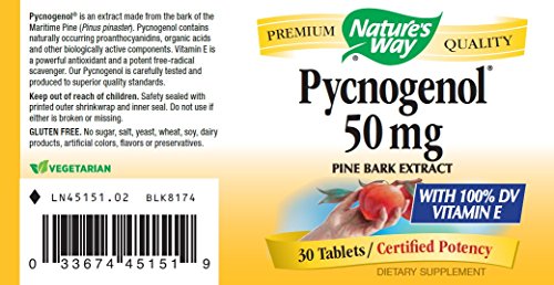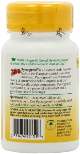 Nature's Way Pycnogenol Description: A potent free-radical scavenger Pycnogenol is an extract made from the bark of the European coastal pine. Pycnogenol is a concentrated source of proanthocyanidins, organic acids and other biologically active components. It is a powerful antioxidant and a potent free-radical scavenger. Disclaimer These statements have not been evaluated by the FDA. These products are not intended to diagnose, treat, cure, or prevent any disease.Feature
