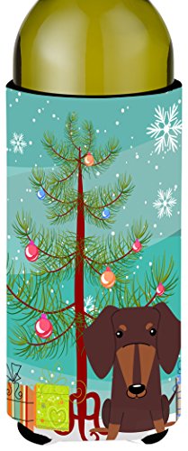 Caroline's Treasures BB4256LITERK Merry Christmas Tree Dachshund Chocolate Wine Bottle Beverage Insulator Hugger, 750ml, Multicolor