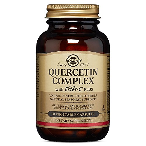 -. Feature : IMPORTANT BIOFLAVINOID: Solgar Quercetin Complex includes the most important bioflavonoid, Quercetin, along with Ester-C Plus and Bromelain in a synergistic formula to provide immune health support. This complex also provides natural seasonal support as well as unique antioxidant protection / WHAT IS QUERCETIN: Quercetin is found in food such as onions and possesses antioxidant properties which help to stabilize cell membranes. / ESTER-C PLUS BENEFITS: Ester-C Plus provides a pH neutral, non-acidic, patented form of Vitamin C that is gentle on the stomach. In addition Ester-C Plus offers the benefits of incorporating acerola berry, citrus bioflavonoids, rose hips and rutin / ADDITIONAL BROMELAIN: In addition to Quercetin and Ester-C Plus, these vegetable capsules also feature bromelain which is a natural enzyme derived from pineapple / KOSHER, GLUTEN FREE & SUITABLE FOR VEGANS: These vegetable capsules are KOF-K Kosher certified and are certified gluten free. They are free of: gluten, wheat, soy, dairy, yeast, sugar, and sodium. They are also free of artificial flavors, sweeteners, preservatives and colors