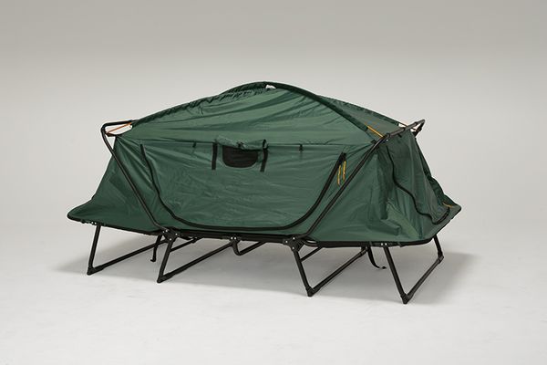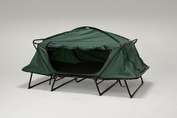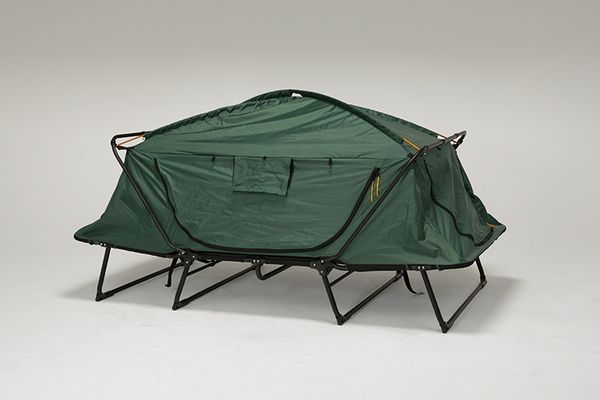 ●アウトドアで使えるセミダブルサイズのサイズのテントベッド。脚付きなので、湿地や石の多い場所でも快適。