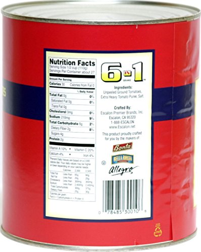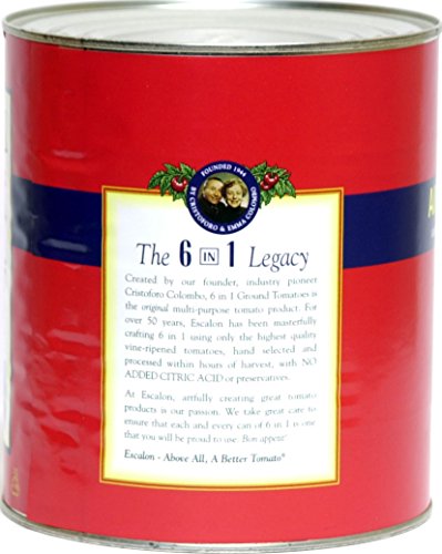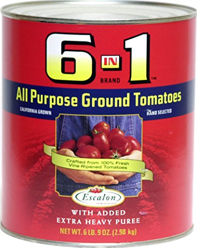 This versatile Escalon product has long been a favorite of pizza and pasta operators because of its sweet tomato flavor, bright natural color and thick, rich consistency. 6 in 1® contains only vine-ripened, unpeeled ground tomatoes, extra-heavy purée and a touch of salt.