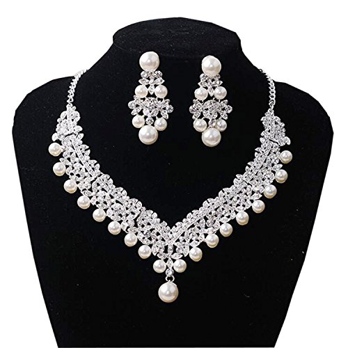 Vintage flora Aolly earrings and necklaces with rhinestones, pearls and crystals for wedding, party, evening casual,and also as gift.