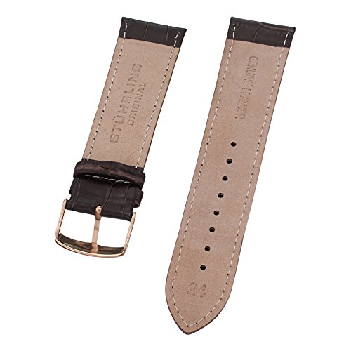 -. Title : Stuhrling Original Mens 24mm brown leather watch strap with rose tone buckle st.107BG.3345K2