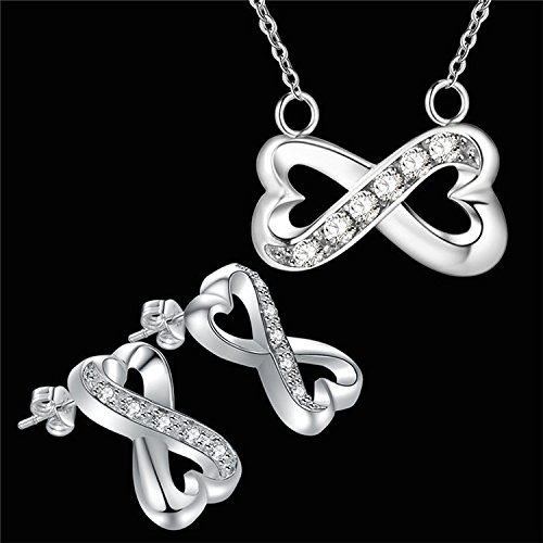 -. Title : 925 Sterling Silver Infinity Hearts Pendant Necklace Stud Earrings Set For Women Teen Girls P.R.Ime Gift
