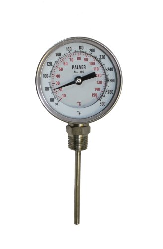 Palmer 3BCP625/125F&C All Pro Welded Stainless Steel 304 Dual Scale Bimetal Thermometer, 25/125 F and -5/50 C Range, 3" Dial, 6" Stem, 1/2" NPT Connection, Back Mount