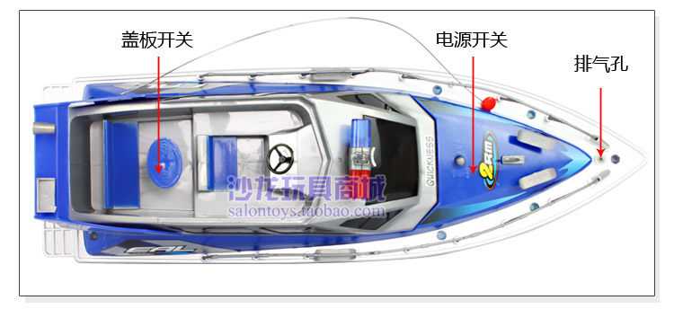 排气孔:甲板上有排气孔,因船体内部动力和电子部件处在高度密封的舱室,船在水中长时间连续行驶,密封舱内会产生水蒸汽。因此船在停止使用时,应把排气孔塞取出,便于舱室空气流通,水蒸汽排出,可延长使用寿命。