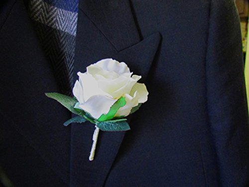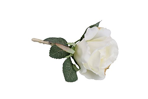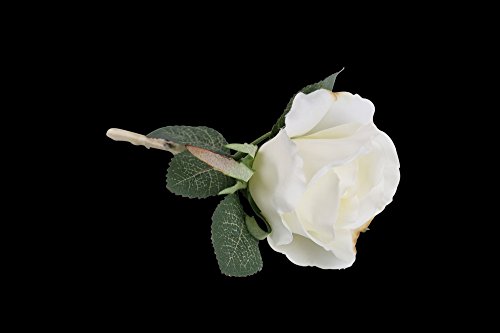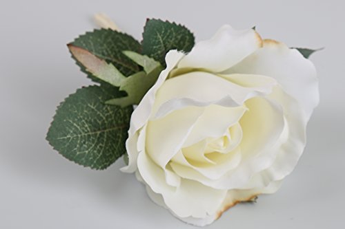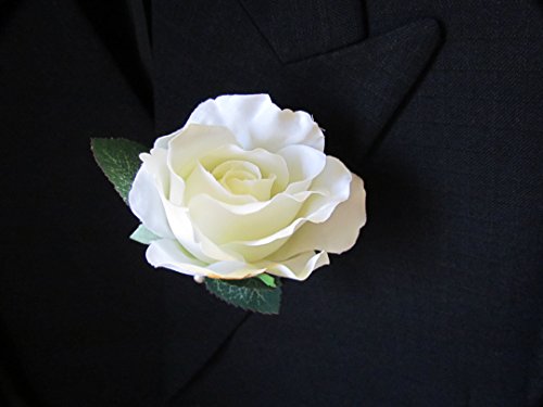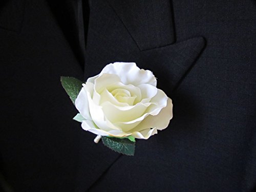 White Silk Rose Boutonniere with Cream Ribbon