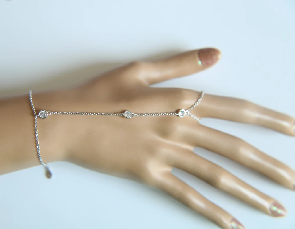 Model Number:real 925 silver Bracelet Connected Finger Ring Palm Bangle Crystal Han