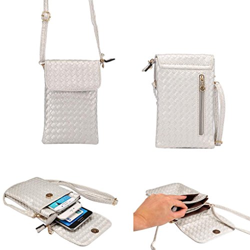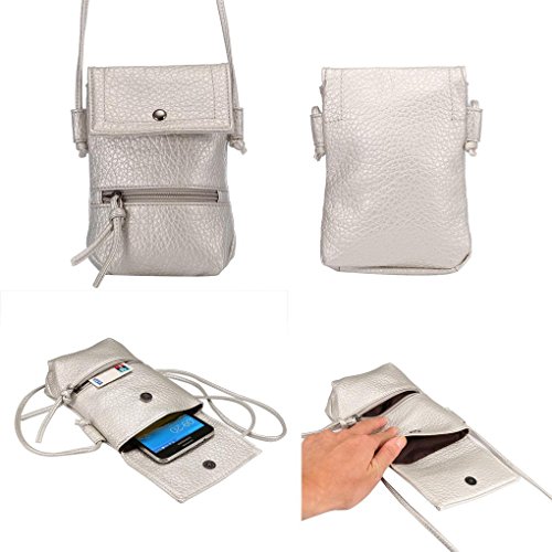 WaitingU Universal Crossbody Cell Phone Bag Multipurpose Soft PU Leather Carrying Cases Wallet Shoulder Pouch Bag for iPhone 6/6S Plus 6/6S Samsung Galaxy Note Series Phones Under 6.2 inchs -Silver