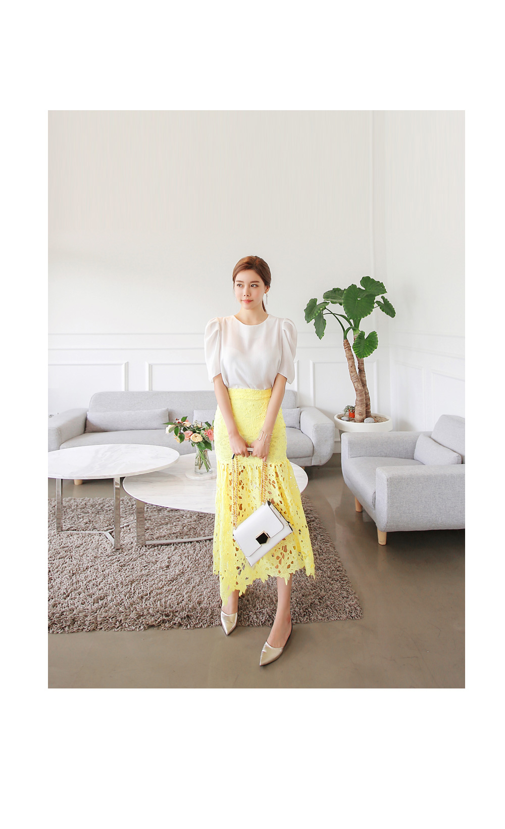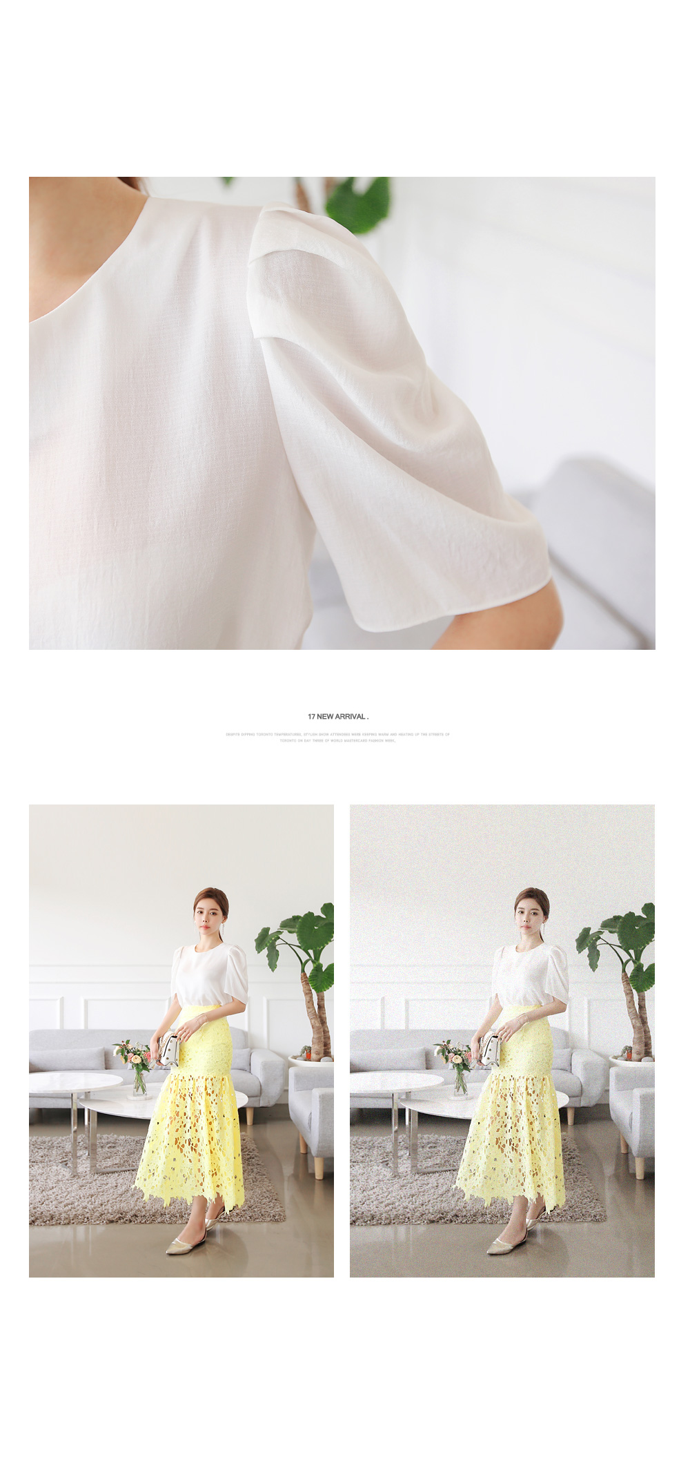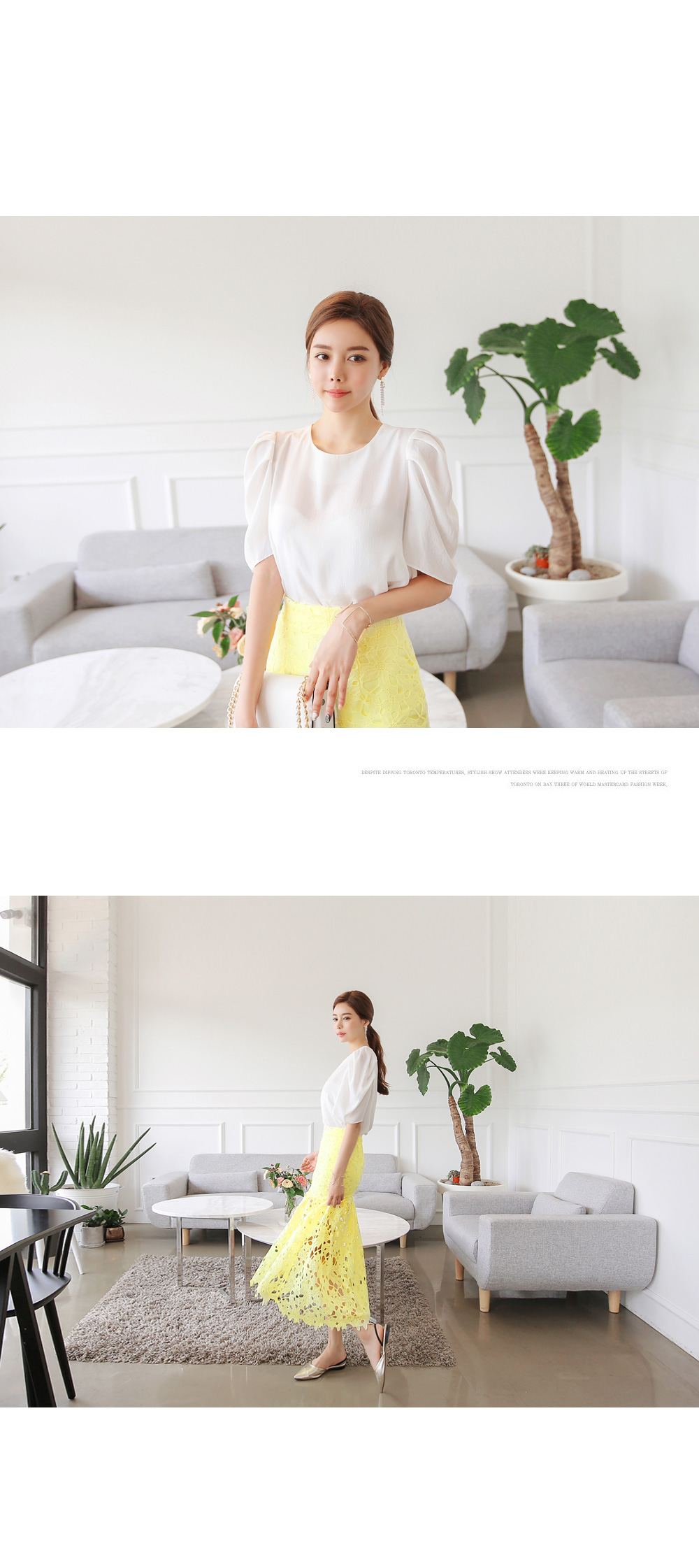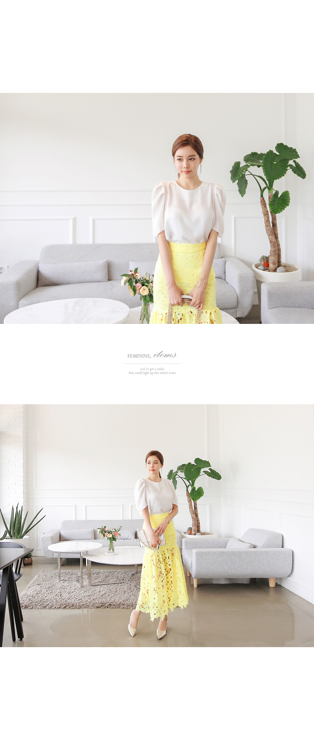 페미니한 무드를 더한 블라우스 아이템이랍니다.