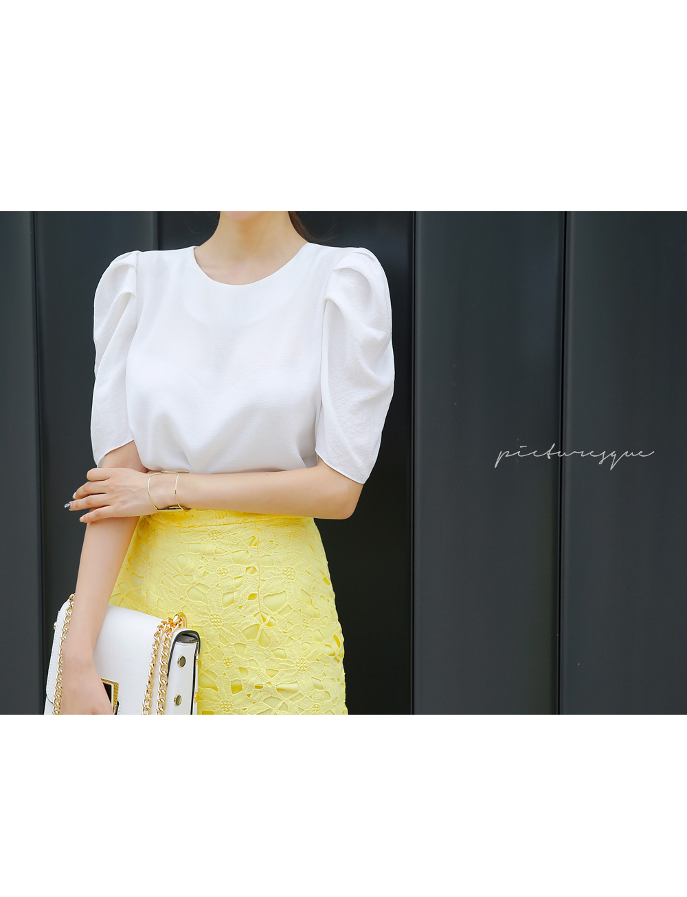 퍼프 소매 디테일이 포인트로 들어가