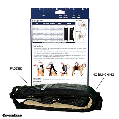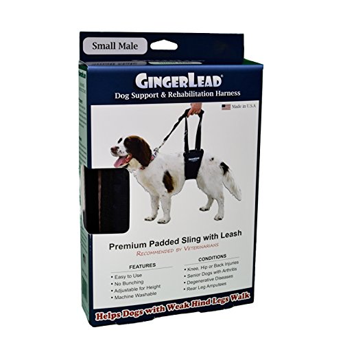 Studio : GingerLead Publisher : GingerLead Binding : Misc. Product Description The Small Male GingerLead is generally for small dogs (male or female) under 40-45 lbs, or larger breeds with a barrel chest and a narrow waist, like Boxers or Pit Bulls. Support pad is 3.5" wide at the cutout. Straps (including support pad) adjust from 37" - 60" long....... *** See sizing chart image for details ***..... GingerLead's patented design integrates a padded belly sling with a leash handle to help dogs with weak hind legs walk. Ideal for aging or disabled dogs needing some assistance with their balance or mobility, dogs suffering from arthritis, degenerative myelopathy or other debilitating conditions, or dogs recovering from knee, hip or back injuries ............................ PREMIUM SUPPORT SLING WITH PADDED HANDLE LEASH which is easy to use, available in male slings, adjustable to fit most breeds, and is machine washable. The premium support pad is designed to minimize bunching. The integrated handle leash maximizes control, safety comfort for both you and your dog. Only one hand needed to help your dog walk. MADE IN U.S.A. ............................ RECOMMENDED BY VETERINARIANS AND ORTHOPEDIC SURGEONS for a dog's recovery from surgically repaired hips or knees, or provide rear support stability for dogs with weak hind legs. Use for physical therapy to rehab various knee, hip or back injuries. Used by veterinarians throughout the United States and Canada ............................ RECOVERY SLING FOR POST-OPERATIVE SURGERY: ? IVDD (Intervertebral Disk Disease) ? Patellar Luxations ? TPLO (Tibial Plateau Leveling Osteotomy) ? TTA (Tibial Tuberosity Advancement) ? TPO (Triple Pelvic Osteotomy) ? Total Hip Replacement ? FHO (Femoral Head Ostectomy) ............................ HELP INJURED OR ELDERLY DOGS WALK with: ? Hip Dysplasia ? Arthritis in knees, hips or back ? Stroke Recovery ? Back or Spinal Injuries ? Fibrocartilaginous Embolism ? Rear Leg Amputees ? Rear Leg Paralysis ? Conservative Management ? Dogs struggling with stairs 0