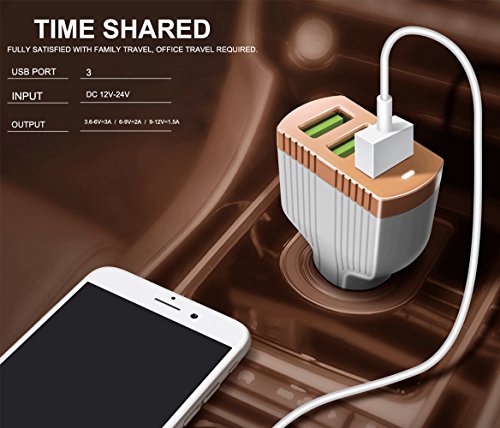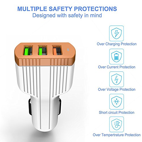 - 6.5 Amps 3 ports USB car charger adapter allows you to charge multiple devices simultaneously at full charging speed while on the road.