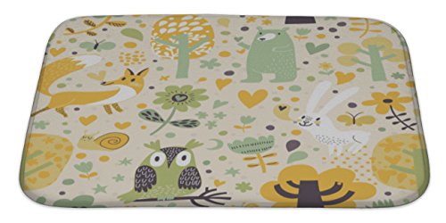 Gear New Stylish Floral Pattern with Forest Animals Bath Rug Mat No Slip Microfiber Memory Foam