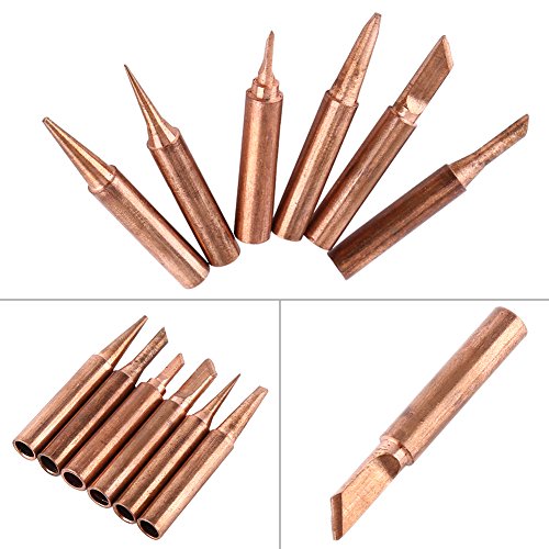 900M-T Series Pure Copper Lead-free Replaceable Solder Iron Tips Set Low Temperature Soldering Station Tool Shape 3C, SK, 2.4D, B, K, I (6pcs)