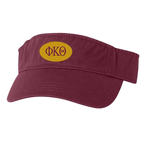 Binding : Apparel Product Description Phi Kappa Theta Greek Oval Heavy Visor Our quality visors feature a two-tone embroidered oval design on the front in your choice of colors, an adjustable fabric Velcro strap on the back and a super soft, flexible body for superior comfort. 0