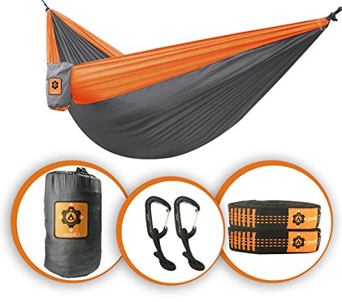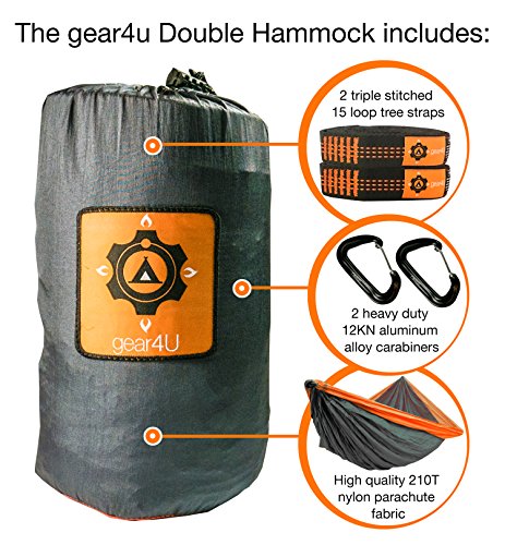 Gear4U: Two Person, Double Camping Hammock with Heavy Duty Tree Straps - Lightweight, Compact & Portable. Strong 210T Nylon Material Perfect for Backpacking, Camping, Travel, Beach or Yard.
