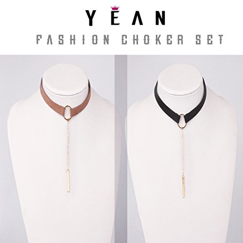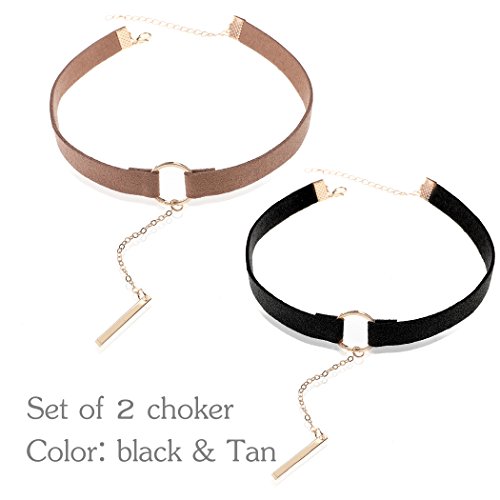 Yean Black and Tan Gothic Lace Choker Necklace, Velvet Clavicle Choker Leather for Women and Girls (Set of Two Black and Tan)