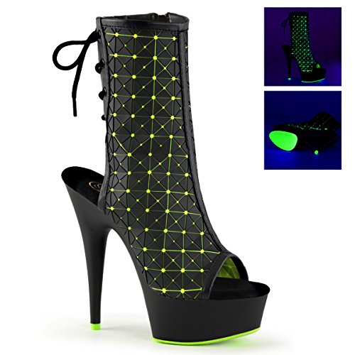 Binding : Apparel Product Description Sensuous. Sexy. Wild. No other adjectives are more fitted to describe the essence of the Pleaser brand of footwear and its extensive range of products. As the ultimate go-to name in sexy shoes, Pleaser has become the standard all others are judged by. This Delight 1018MTX Ankle Boot feature open toe and heel, back lace-up, matrix pattern design UV blacklight reactive outsole/toplift and inside zip closure. Heel height: 6' (15.25cm). Platform height: 1 3/4' (4.5cm). Material: Rubber, Lycra. 0