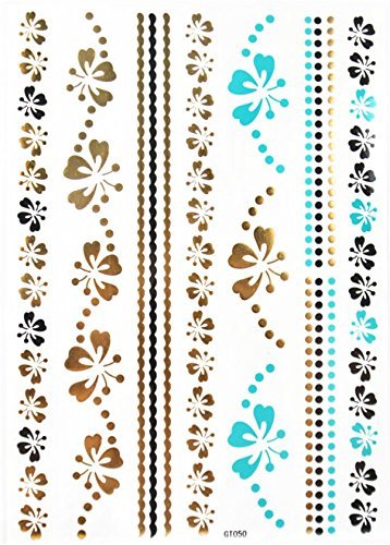 Gold & Silver & Black & Blue Jewelry with butterflies and flowers design Metallic Temporary Tattoos, tattoo Size: 8.27" x 5.51"