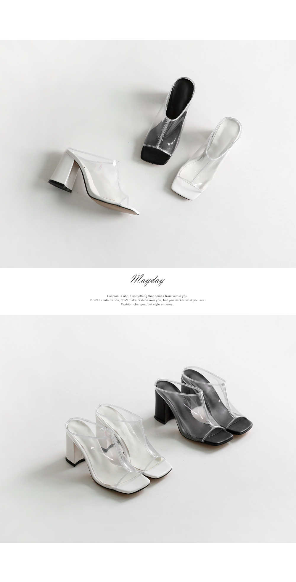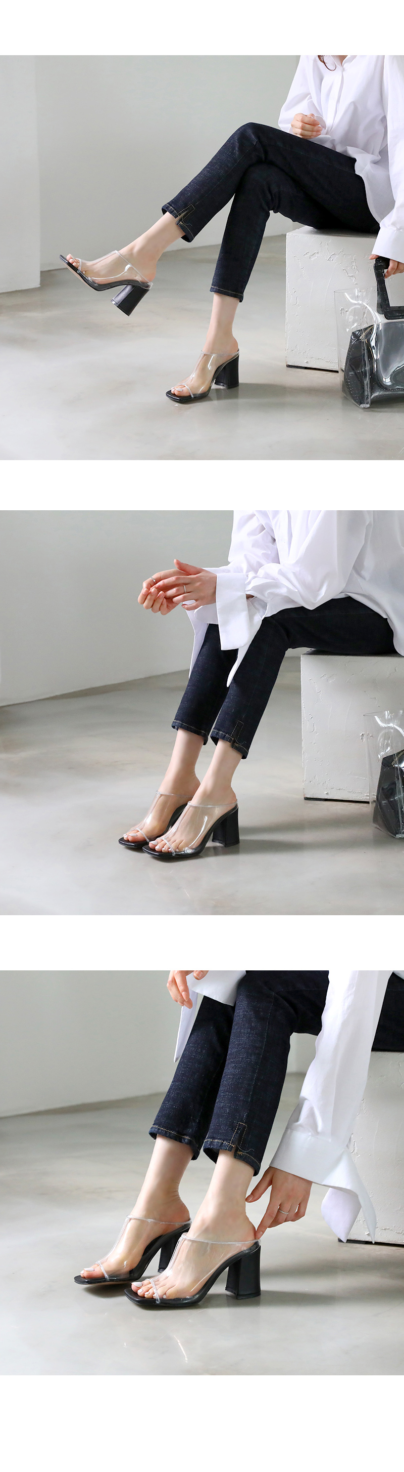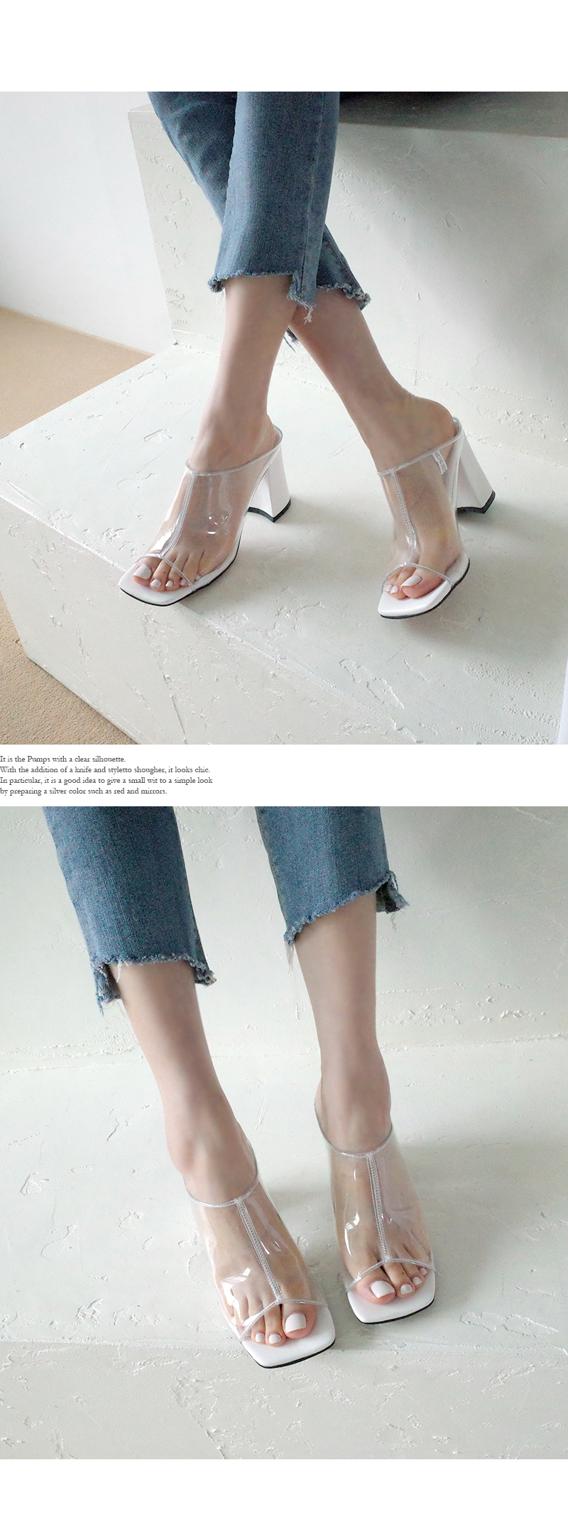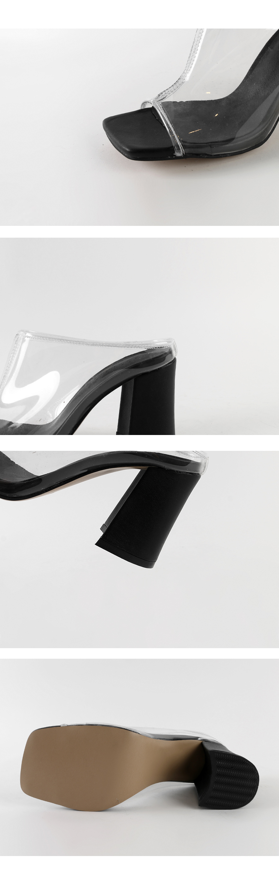 Daily high heel mule. 투명하게 비치는 PVC소재입니다.