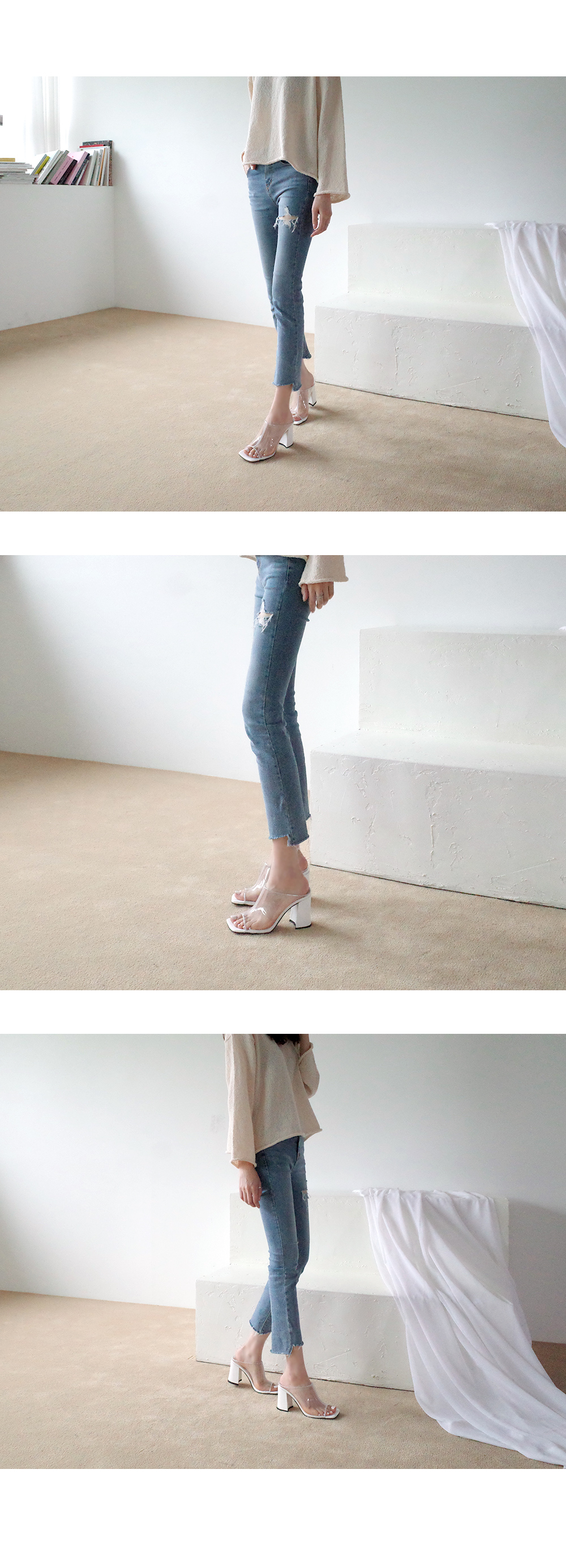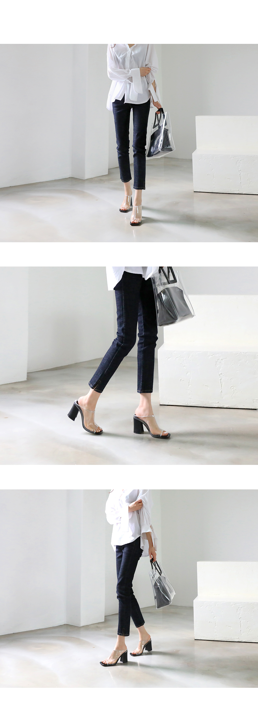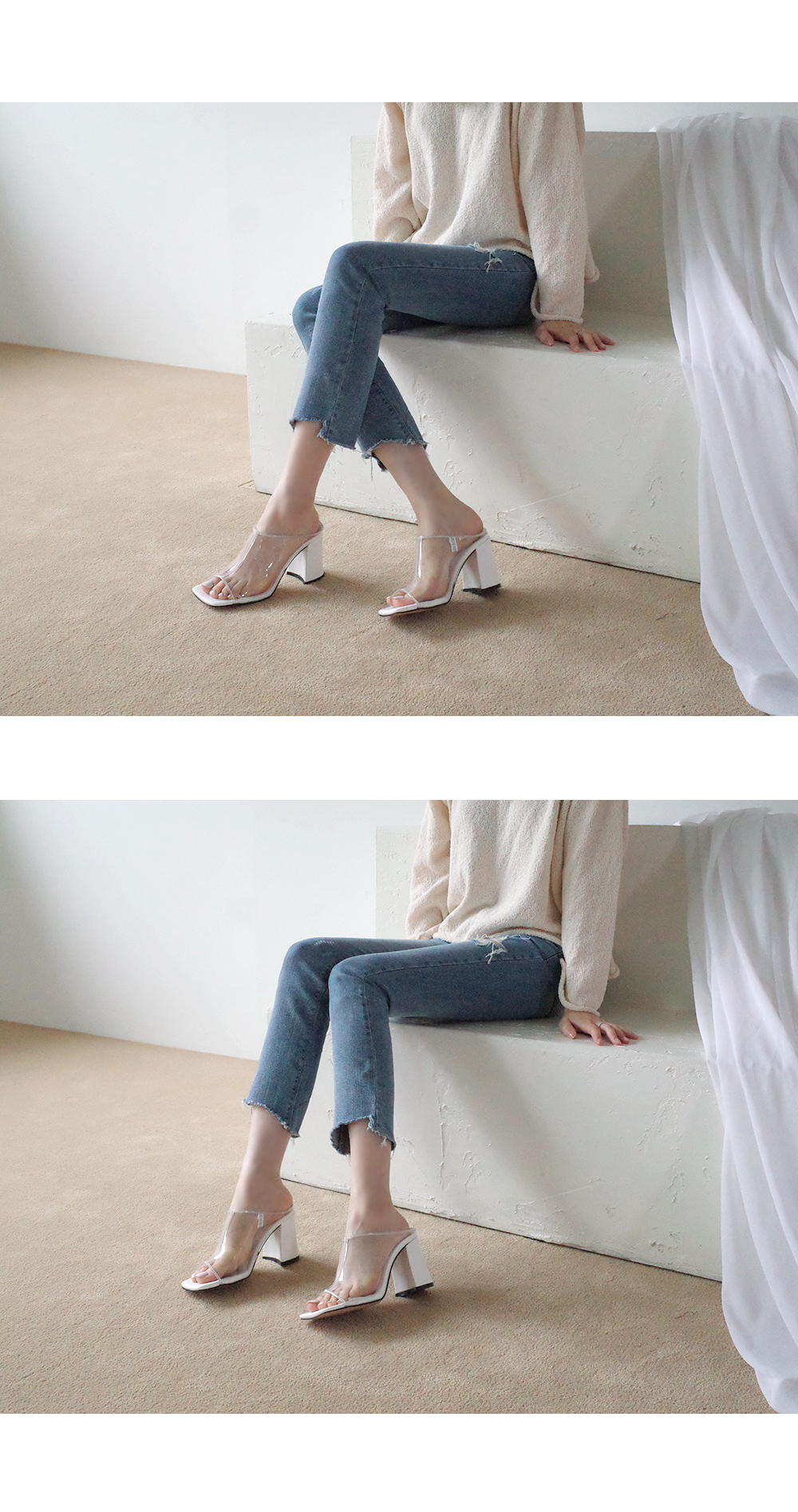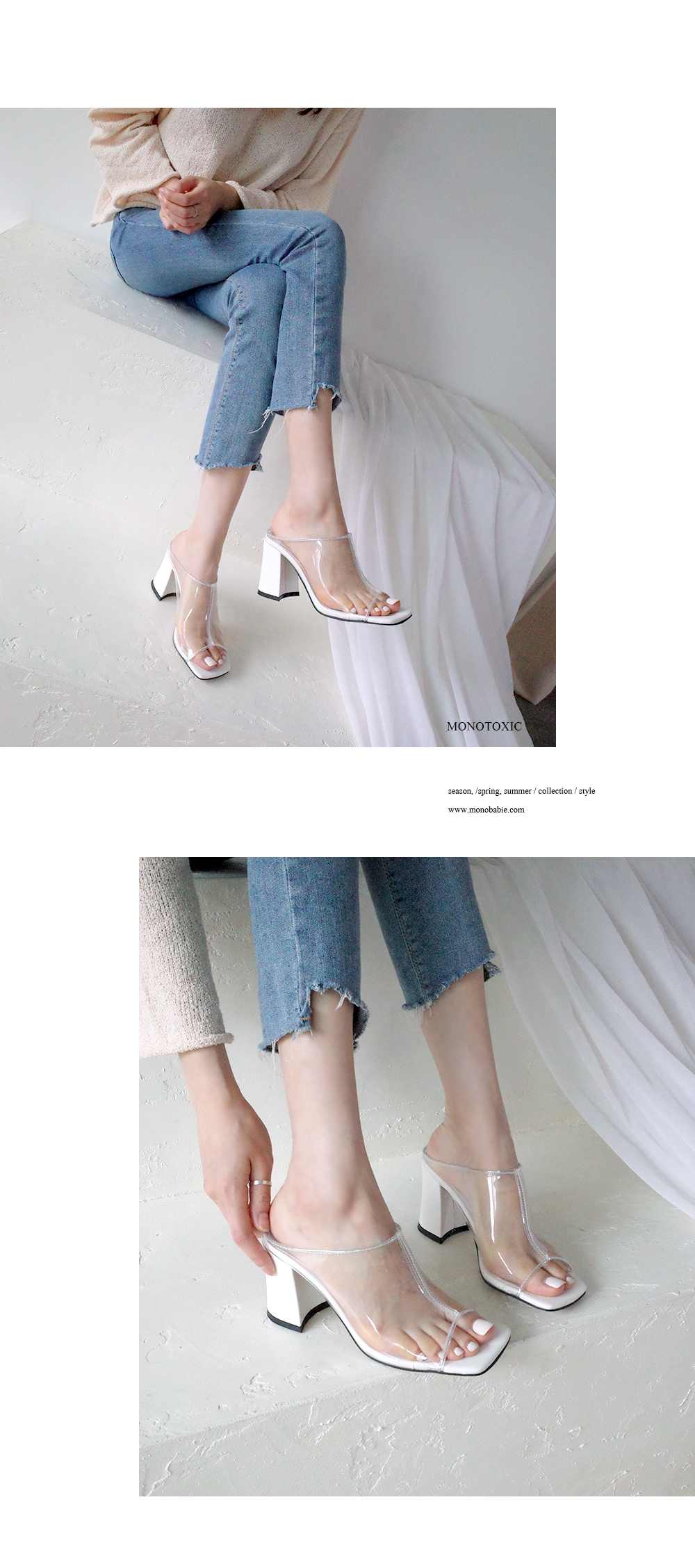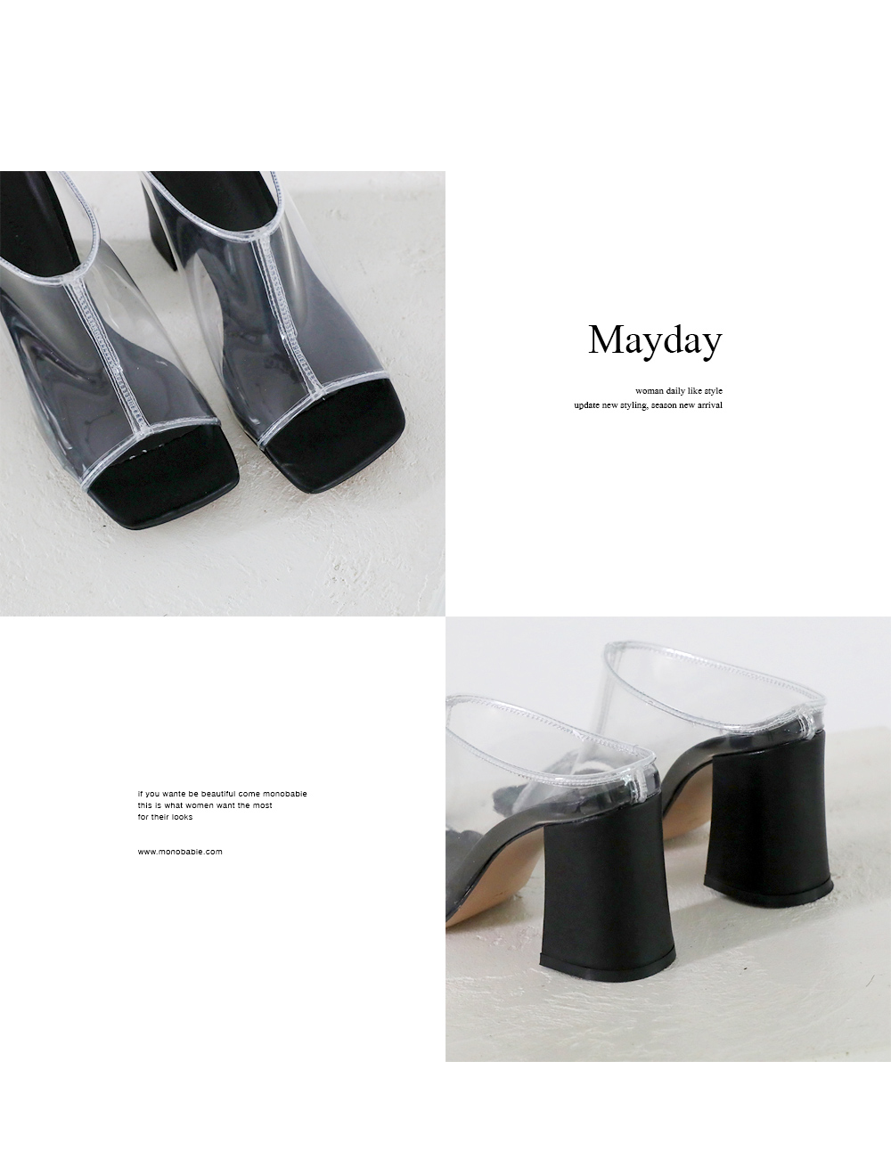 Daily high heel mule. 투명하게 비치는 PVC소재입니다.
