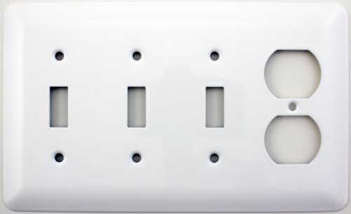Mulberry Princess Style White Four Gang Combination Switch Plate - Three Toggle Light Switch Opening One Duplex Outlet Opening