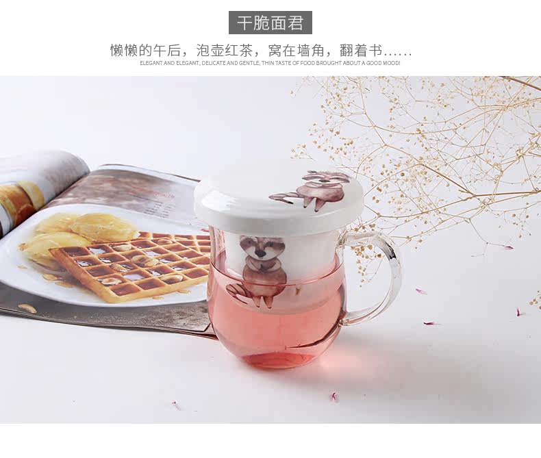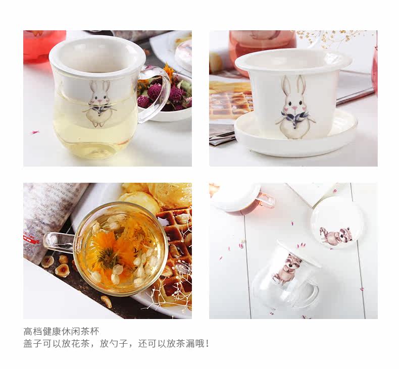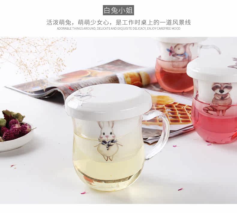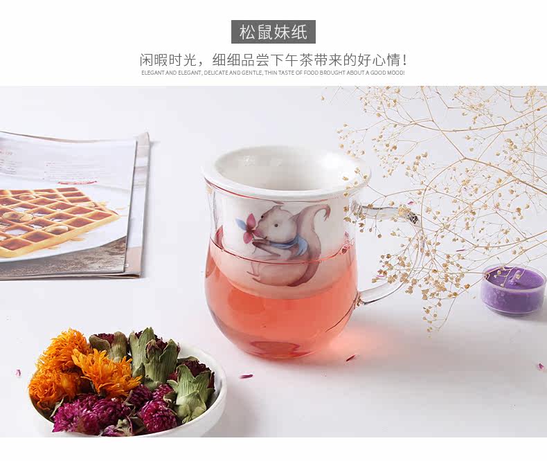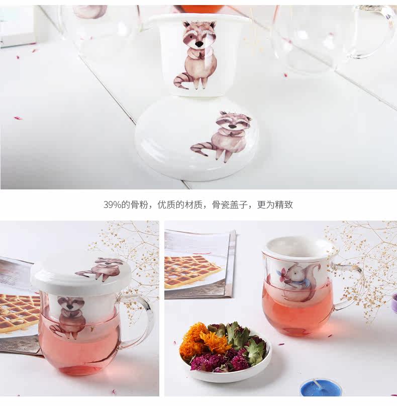 卡通陶瓷骨透明过滤胆泡茶杯高温耐热玻璃花茶杯240ml