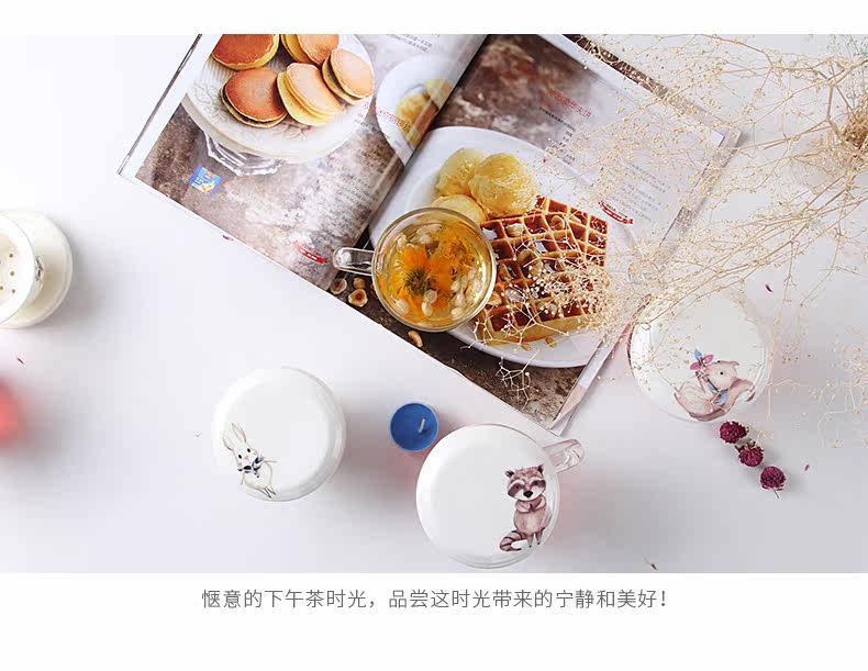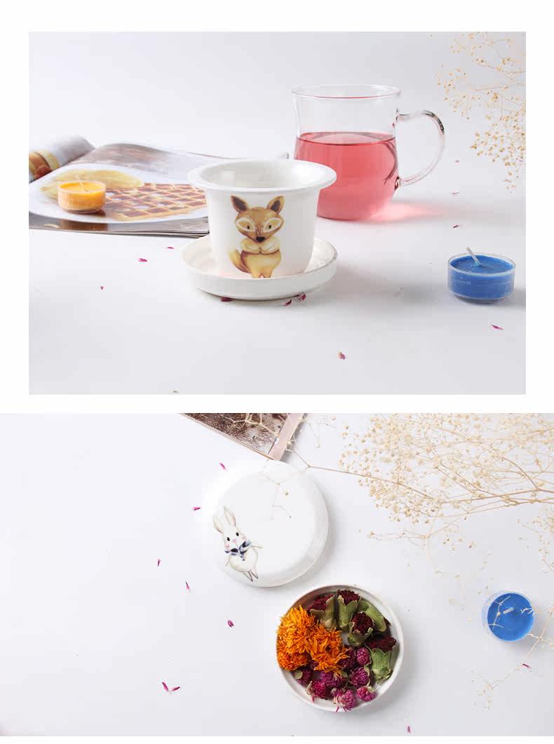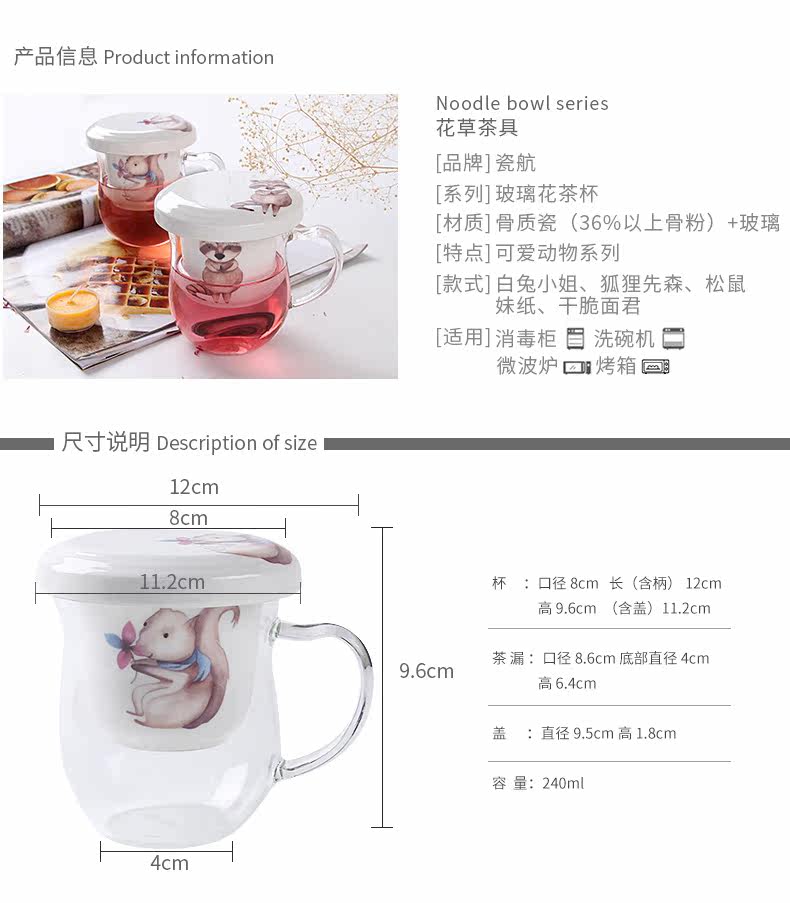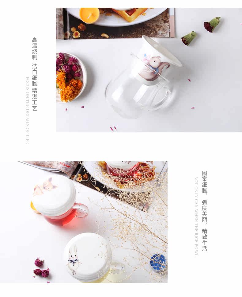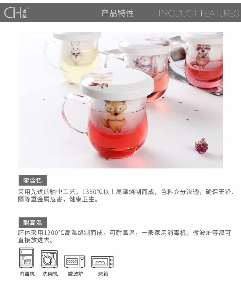 卡通陶瓷骨透明过滤胆泡茶杯高温耐热玻璃花茶杯240ml