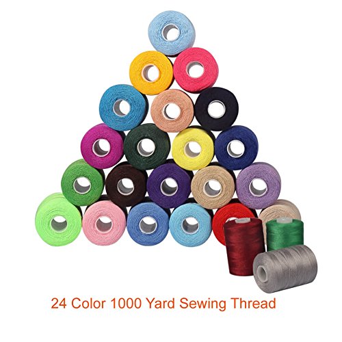 - HIGH QUOLITY THREAD – The Thread is made of Polyester, in 24 different colors, each color per spool and about 1000 yards for each spool. Perfect for your sewing jobs.
