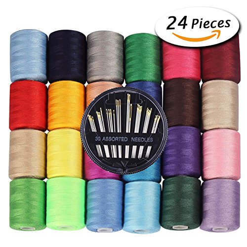 Paxcoo 24 Assorted Color Polyester Sewing Thread spools 1000 Yards Each with 30 Assorted Sewing Needles
