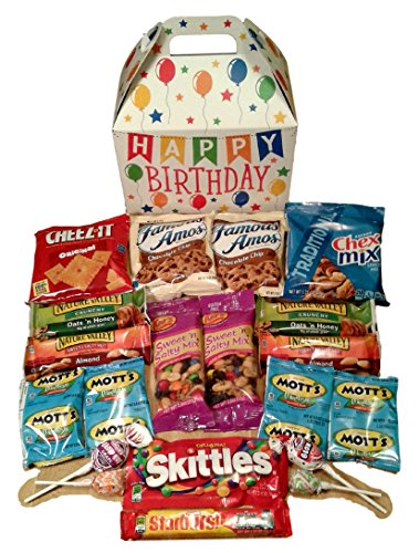 Happy Birthday Care Package features fun birthday themed Gift Box stuffed with savory snacks and sweet candy treats, the perfect gift for your college...