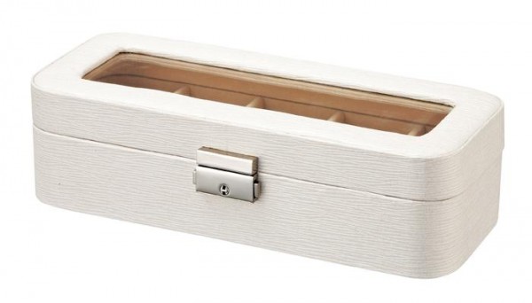 | 腕時計を収納できるコレクションボックスです。さりげなくラメの入ったレザーを使い、他にはない高級感ある仕上がり。上部には中が一目で分かるよう透明なガラスを入れて使いやすさにもこだわりました。 |