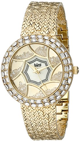 Burgi Women's BUR118YG Crystal Baguette Bezel Mother-of-Pearl & Floating Crystal Dial Yellow Gold Bracelet Watch