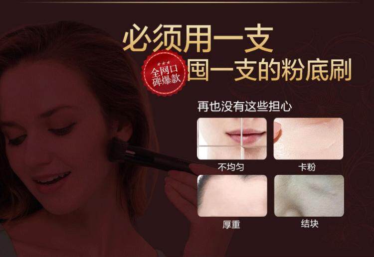 该刷子既能使肌肤能更大面积的接触到粉底,并且施粉均匀、薄、浓密,很好的将本来的素颜覆盖,呈现出很漂亮自然的妆容。