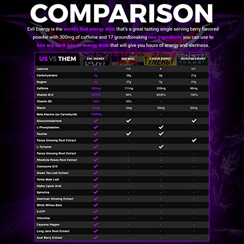 Evil Energy - Turn Any Drink Into An Energy Drink For Long Lasting Natural All Day Sugarfree Energy, Alertness and Monster Focus With 300 Milligrams of...