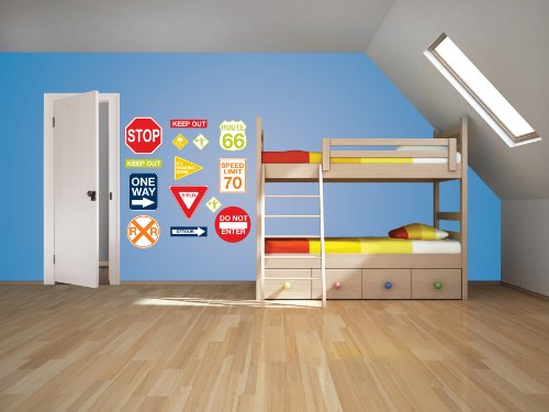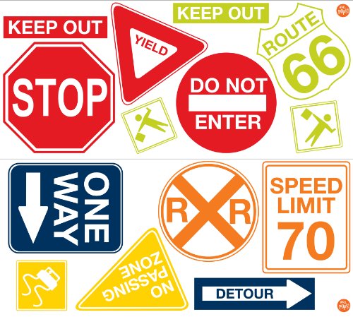 Wall Pops WPK0617 Road Signs Wall Decals, 17. 25-inch by 39-inch, Two sheets