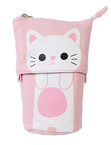 -. Title : iSuperb Transformer Stand Store Pencil Holder Canvas+PU Cartoon Cute Cat Telescopic Pencil Pouch Bag Stationery Pen Case Box with Zipper Closure 7.5 x 4.9 x 3.0inch/4.1x 3.0inch