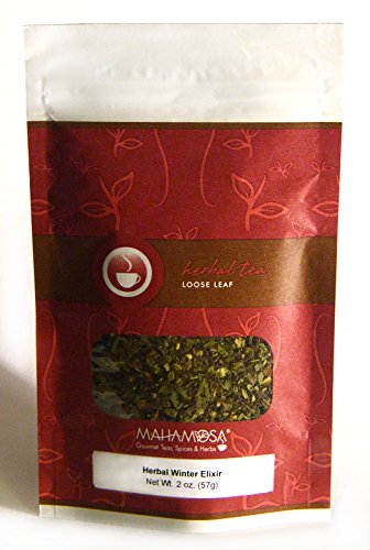 -. Feature : Mahamosa Herbal Winter Elixir Tea 2 oz- Delicious herb-based herbal tea! / Ginger root, orange peel, mint leaves, eucalyptus, and ginger orange flavor. / Perfect any time of day, breakfast, noon, afternoon, or night time! (even summer) / No caffeine/decaf herbal tea / Being in the World®: Mahamosa donates 50% of after-tax net profits to charity!