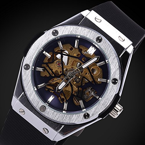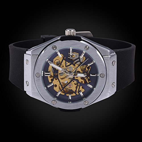 -. Title : TRADERPLUS Winner Elegant Fashion Gold Dial Men's Unique Skeleton Automatic Mechanical Wristwatch
