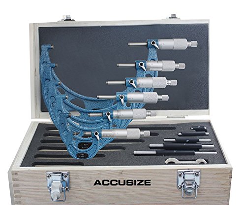 AccusizeTools - 6 Ps 0-6" Outside Micrometers & 2-6"x0.0001" Dial Bore Gauge Set, #0906-1006