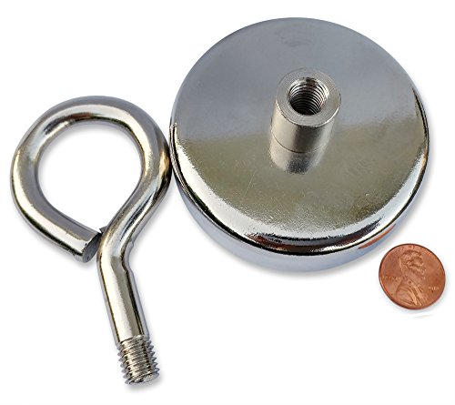 Brute Magnetics Round Neodymium Magnet with Eyebolt, 375 LBS Pulling Force, 2.95" Diameter - Magnet Fishing