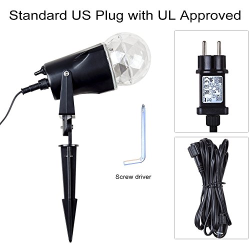 - Easy To Install - It comes with a garden spike for setting on the ground and direct at whichever surface you want. Connected to the spike and plug in and then just enjoy the light show.