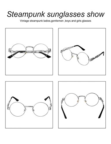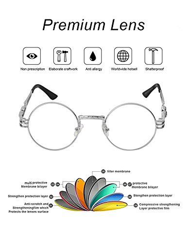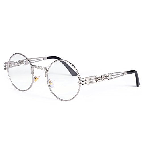 HUA JU Vintage John Lennon Style Metal Spring Frame Round Steampunk Glasses with Clear Lens
