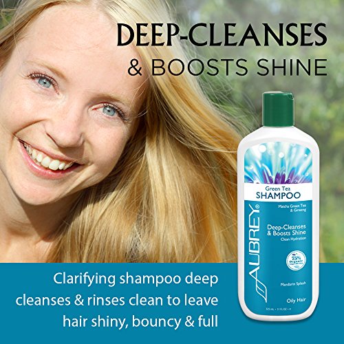Aubrey Organic's Green Tea Clarifying Shampoo deep cleanses and rinses clean to leave hair shiny, bouncy and full. Formulated with organic Matcha green tea and ginseng, our shampoo helps to protect hair and tone the scalp, leaving your hair smooth, clean, and non-oily. Furthermore, sweet almond protein helps to strengthen hair and add fullness with every application. With such an impressive profile, it's easy to see why so many absolutely adore this product!