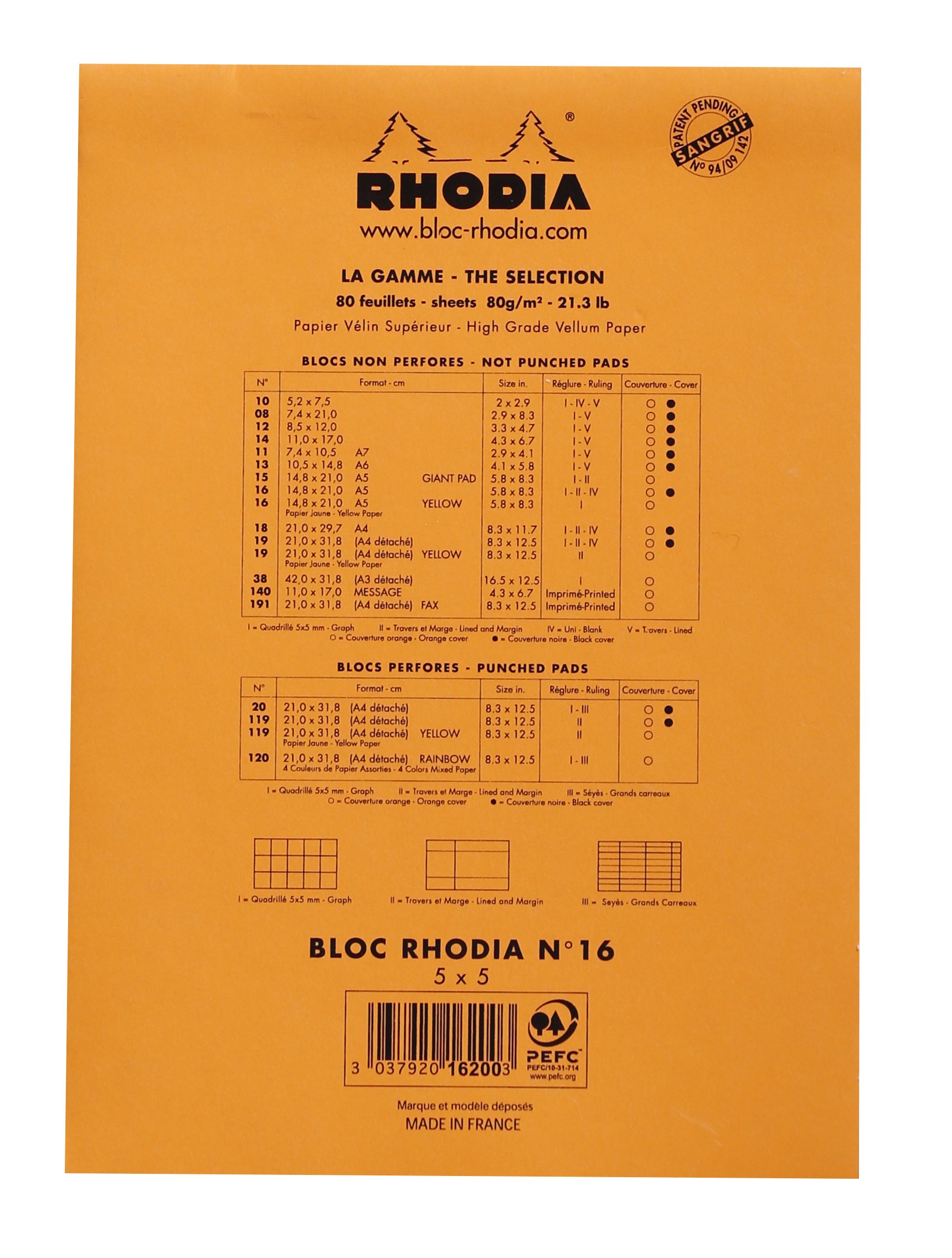 Rhodia Classic Staple Bound Graph Paper Pad - Orange N° 16