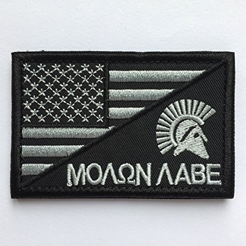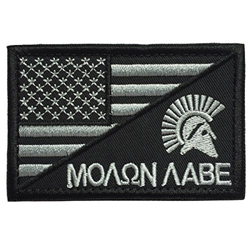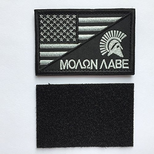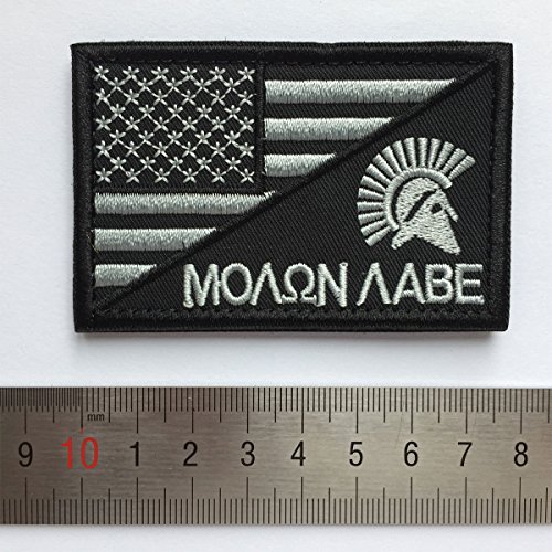 SpaceAuto USA American Flag w/ Molon Labe Spartan Helmet Military Tactical Morale Badge Decorative Emblem Combat Patch 3" x 1.97" - White